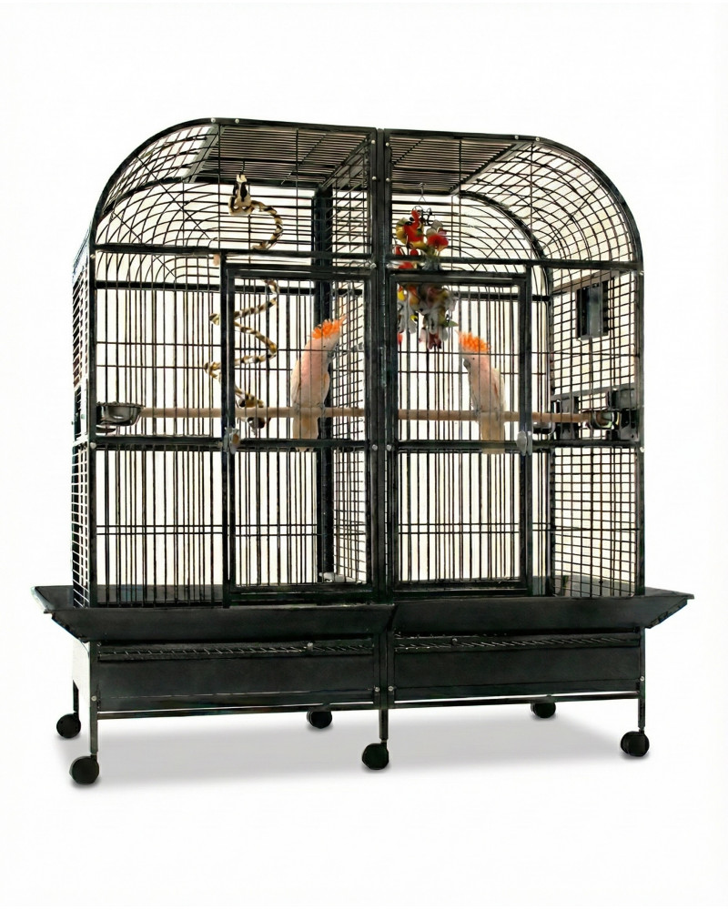 - Incluye percha y 4 comederos giratorios de acero inoxidable con sistema de seguridad exclusivo de Sun Cages.